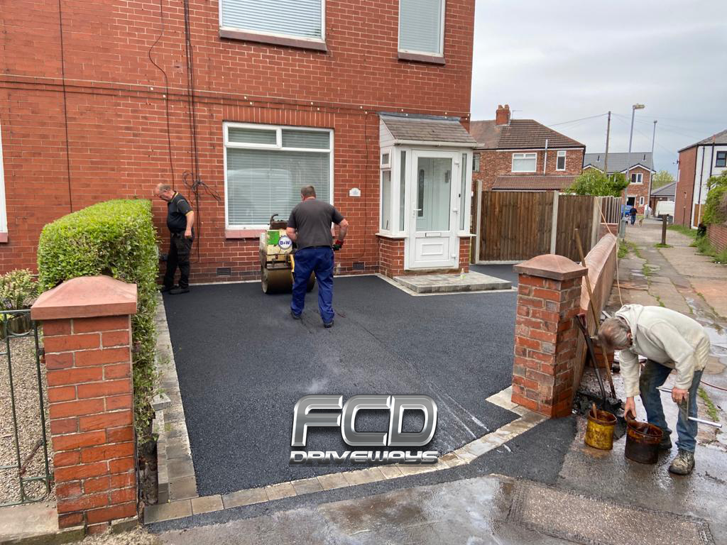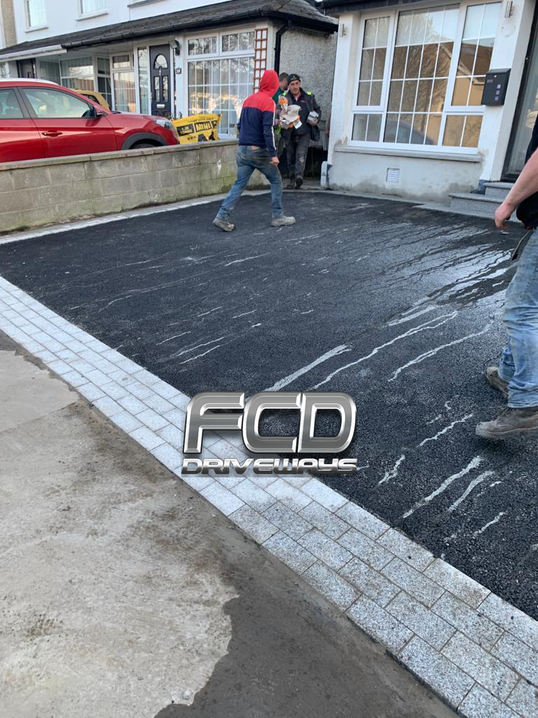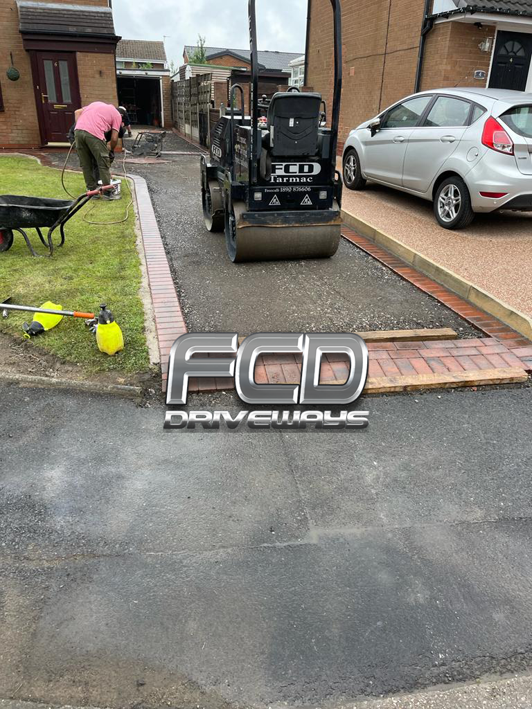 Complete excavation of old driveway complete new foundations,new drainage had to be fitted Marshalls block pavingedging all the way around and finished with 10 mil hot roll tarmac machine rolled to a solid finish